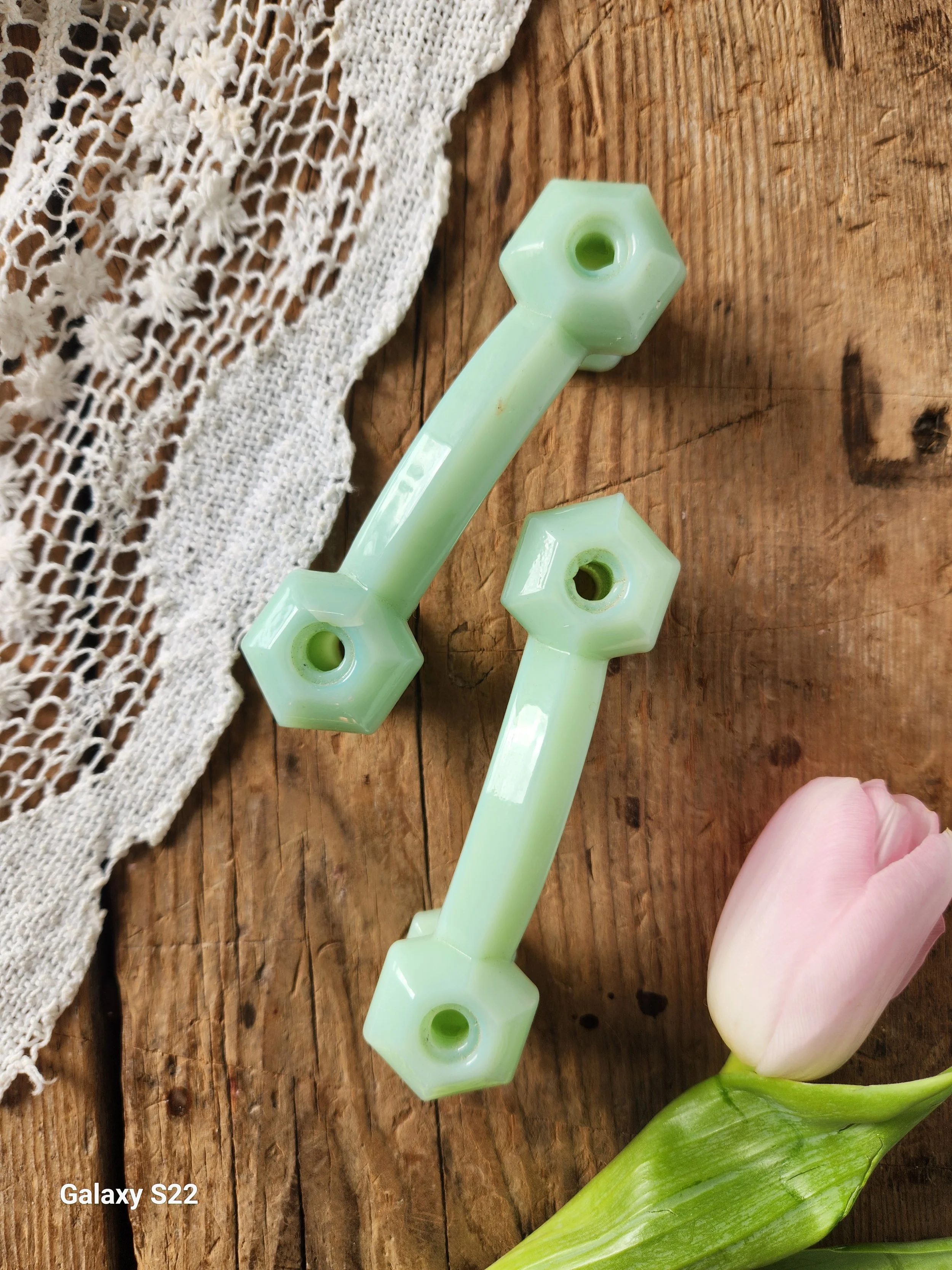 2025 › Vintage pair of Jadeite drawer pulls 5" Image 1 of 1 Vintage pair of Jadeite drawer pulls 5" $26.00 Sold Out Sold Out Added!