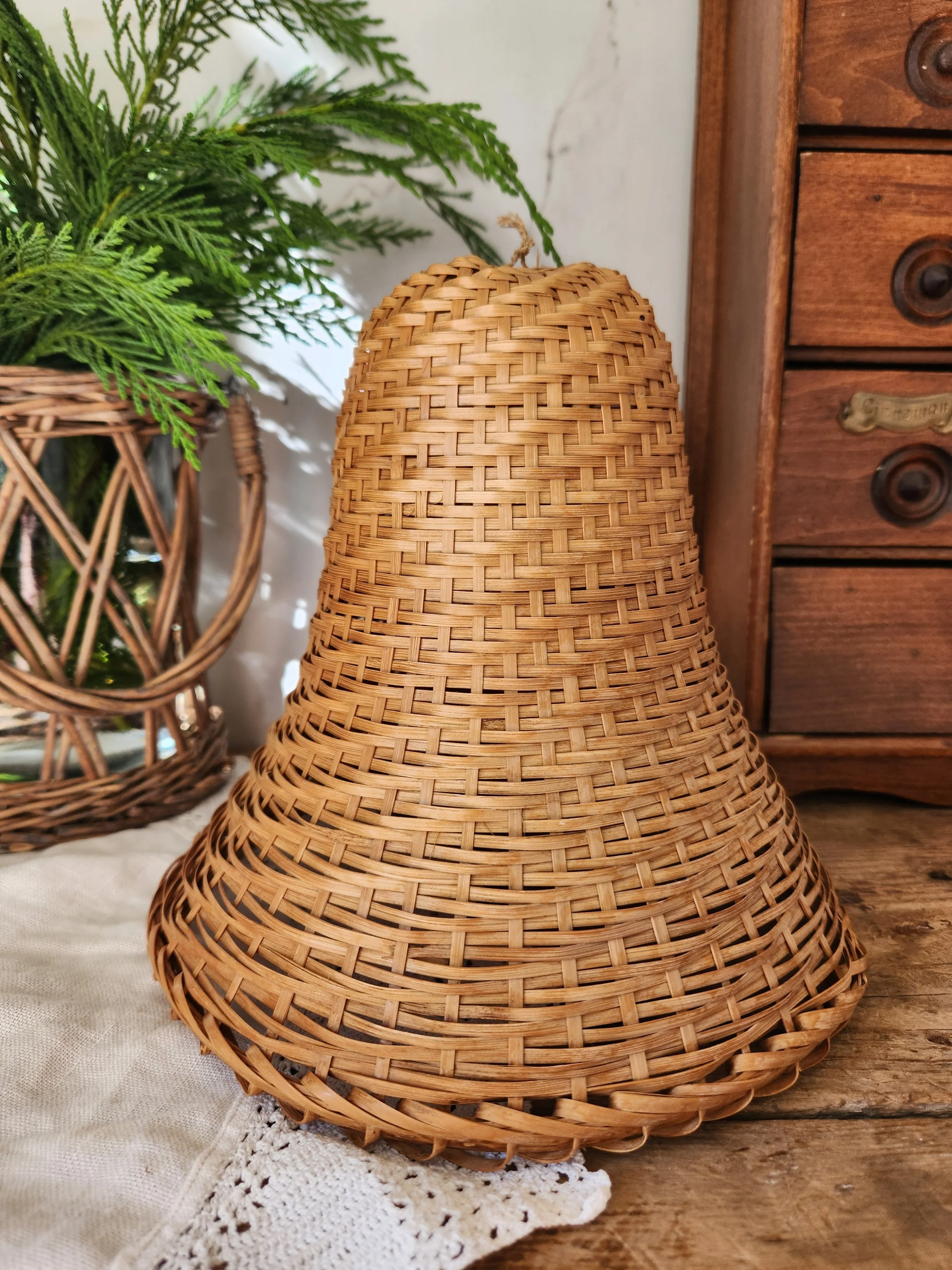 Vintage rattan bell 8x9