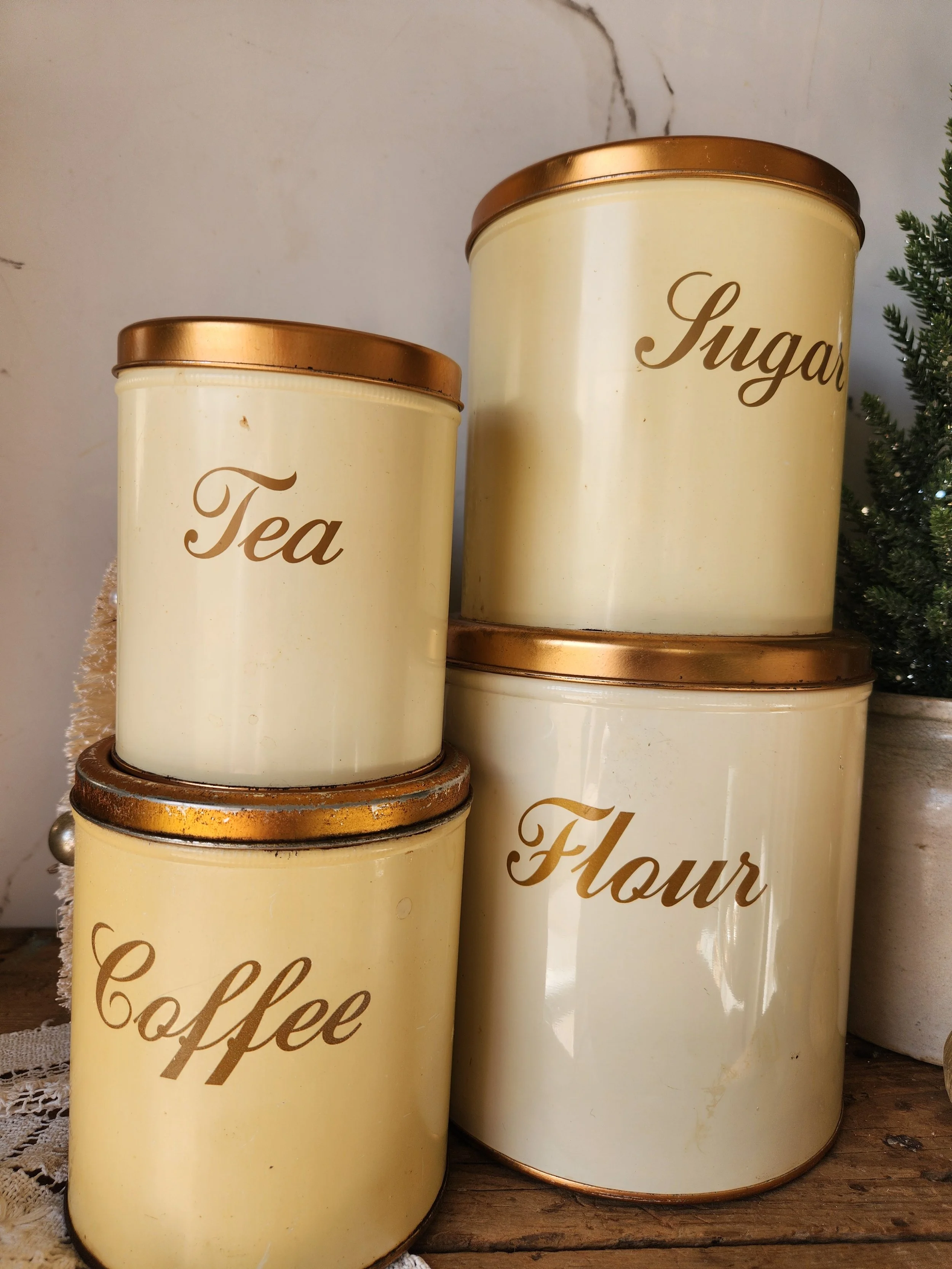 2025 › Vintage Canister set! clean and ready to use! 8"-5" Image 1 of 1 Vintage Canister set! clean and ready to use! 8"-5" $58.00 Add To Cart Added!