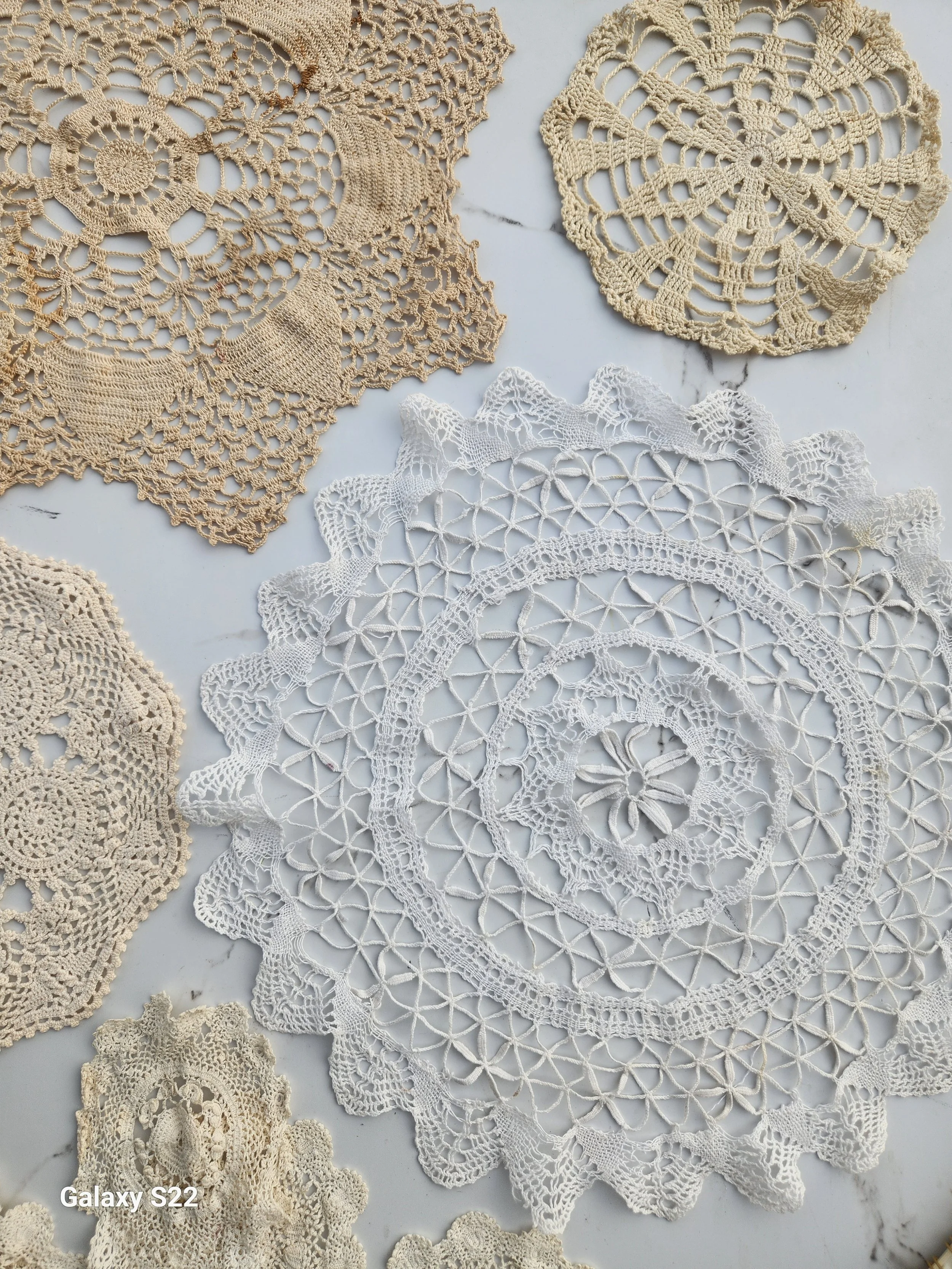 Shoppe › Vintage Doily lot Image 1 of 1 Vintage Doily lot $24.00 Vintage lot of doilys, all intricate and handmade some faint wear they measure 9"-18” Add To Cart Added! Vintage lot of doilys, all intricate and handmade some faint wear they measure 9"-18”