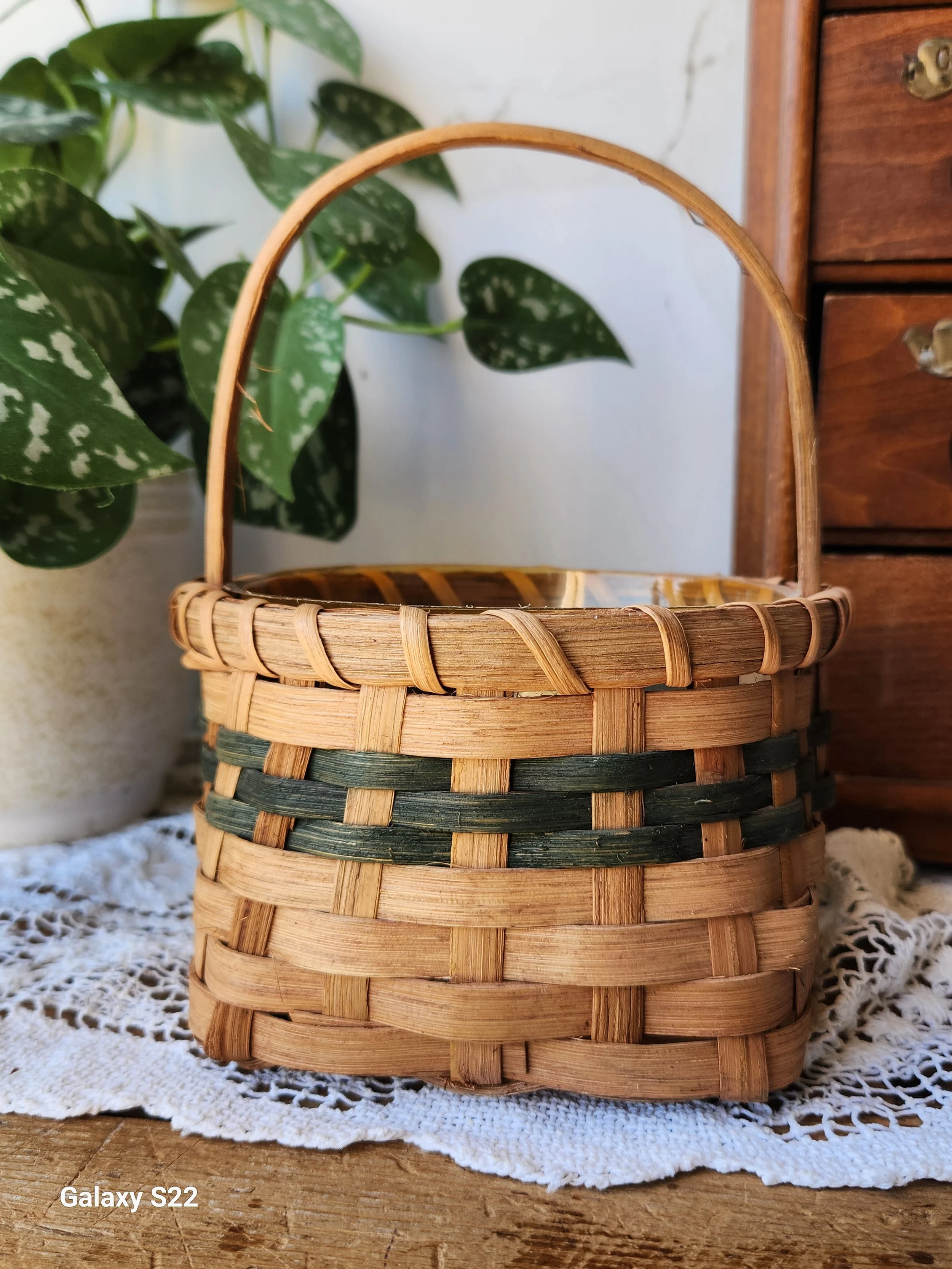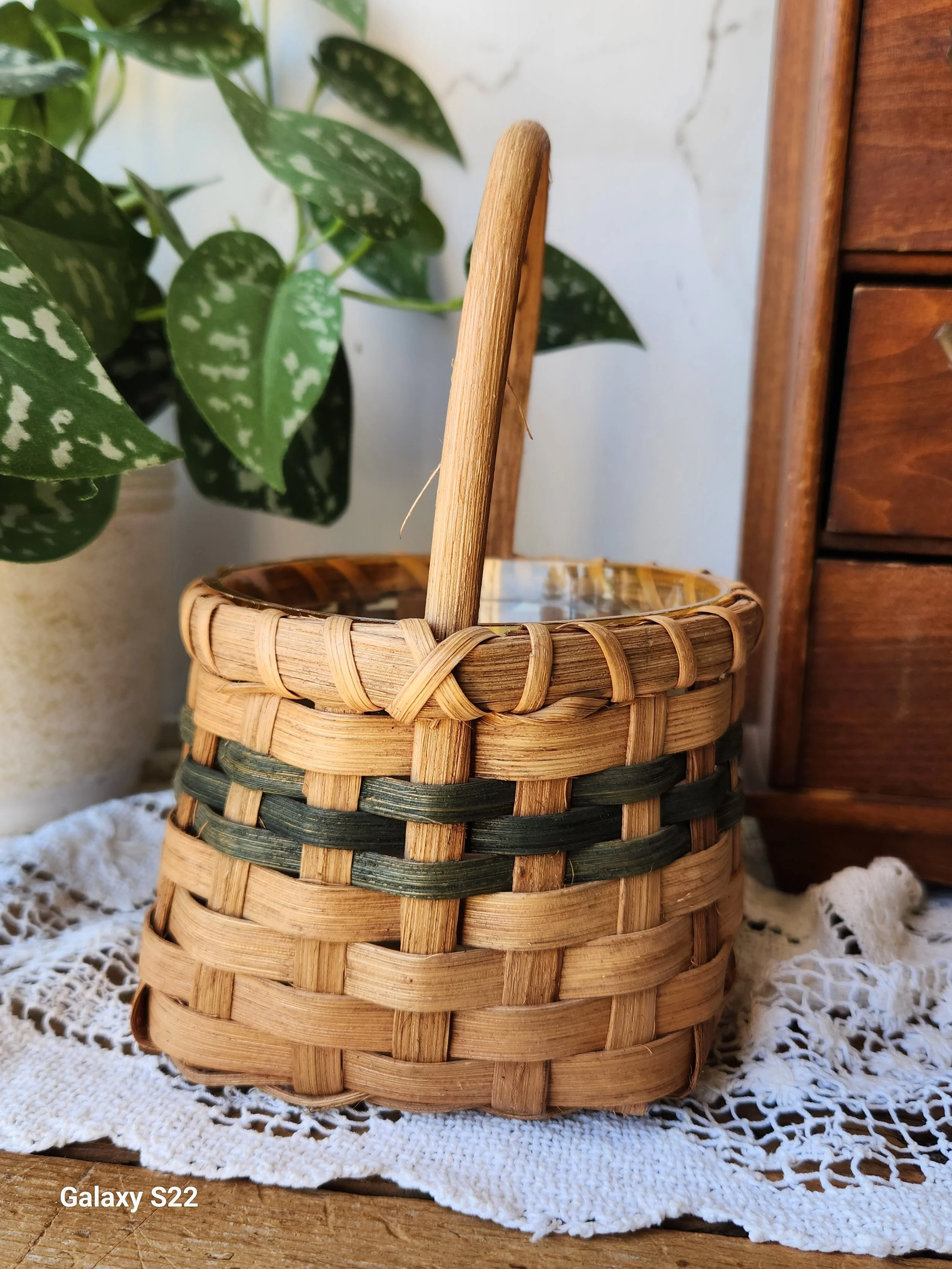 Shoppe › Vintage handmade basket with liner Image 1 of 2 Image 2 of 2 Vintage handmade basket with liner $26.00 A plant would be so charming in this! Has liner that is removable 5x6x8 Add To Cart Added! A plant would be so charming in this! Has liner that is removable 5x6x8 Reviews Reviewer Name Review Date Star Rating Description Posted on Etsy Product Show More
