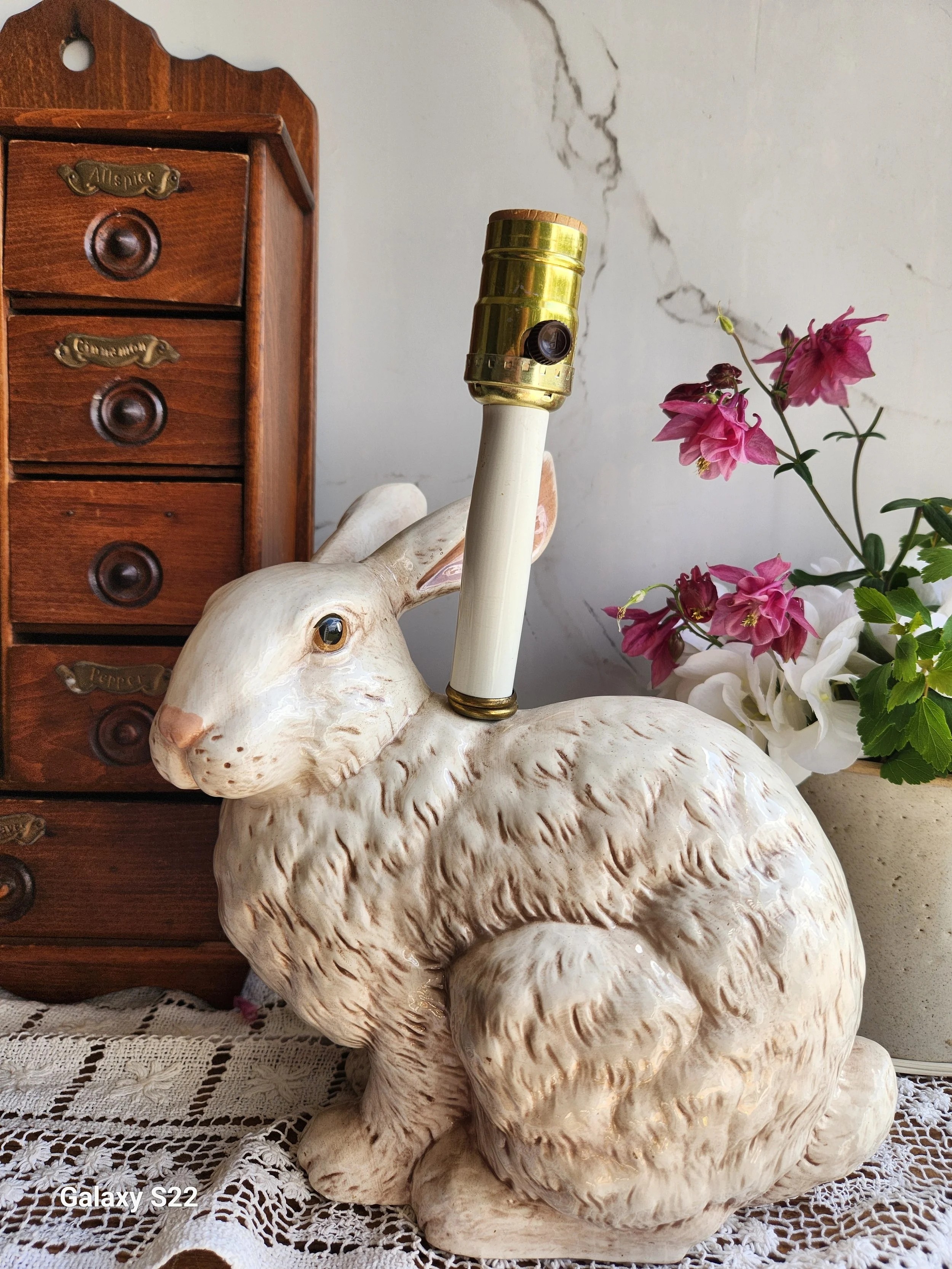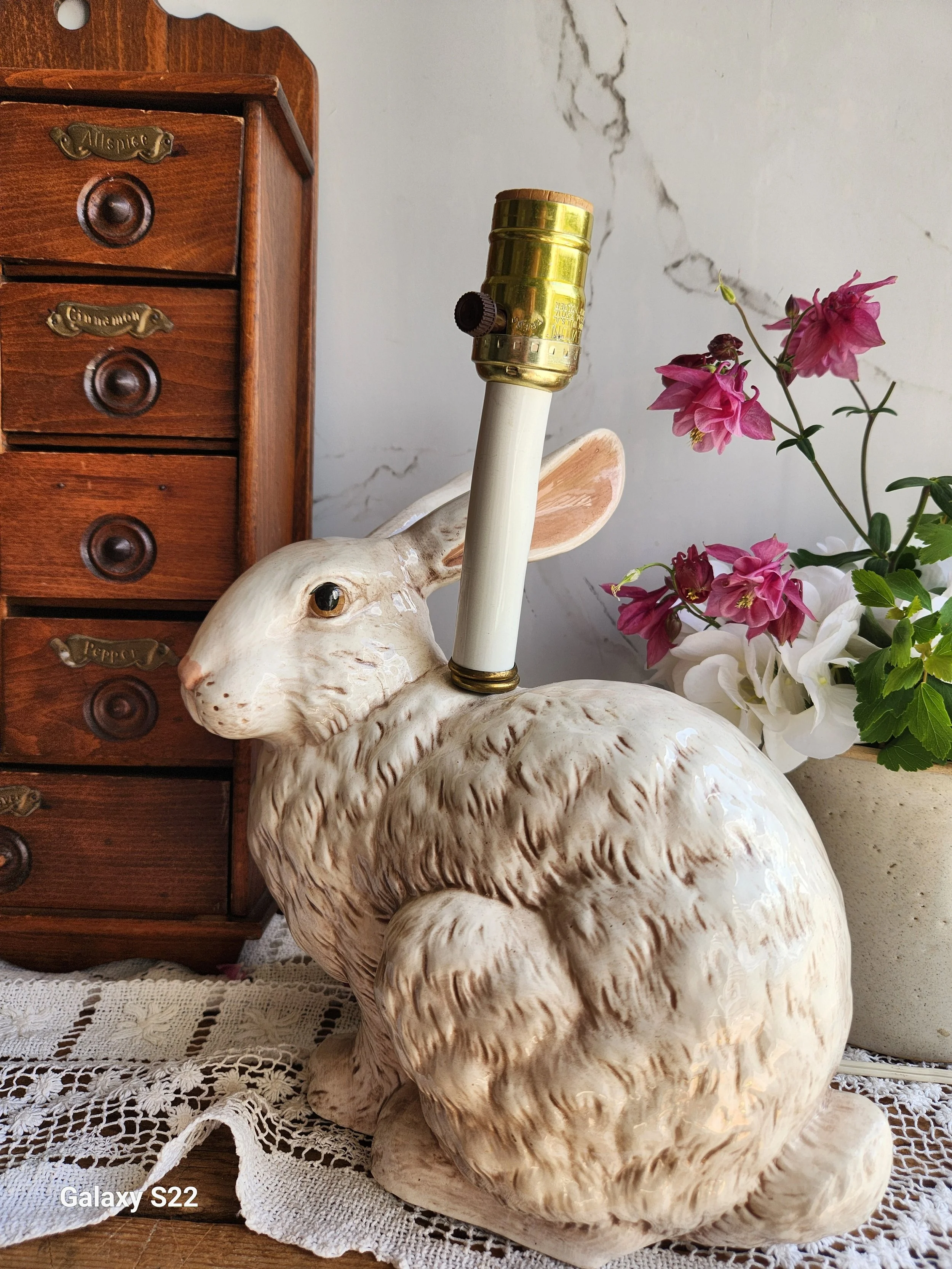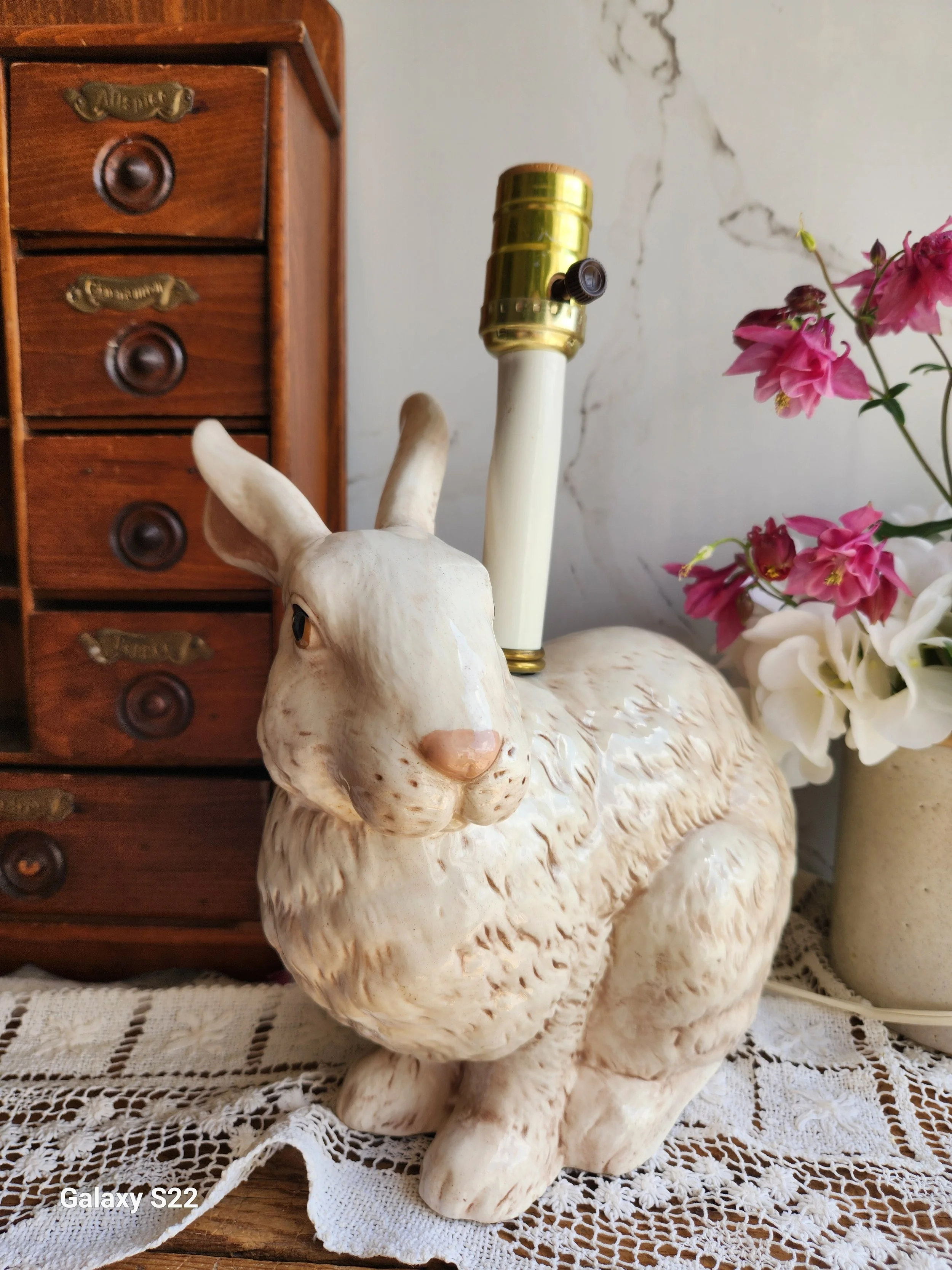 Shoppe › Vintage Italian pottery bunny lamp plug in Image 1 of 5 Image 2 of 5 Image 3 of 5 Image 4 of 5 Image 5 of 5 Vintage Italian pottery bunny lamp plug in $158.00 This bunny lamp is absolutely exquisite! Works wonderfully heavy and so charming! 12x14 Add To Cart Added! This bunny lamp is absolutely exquisite! Works wonderfully heavy and so charming! 12x14 Reviews Reviewer Name Review Date Star Rating Description Posted on Etsy Product Show More