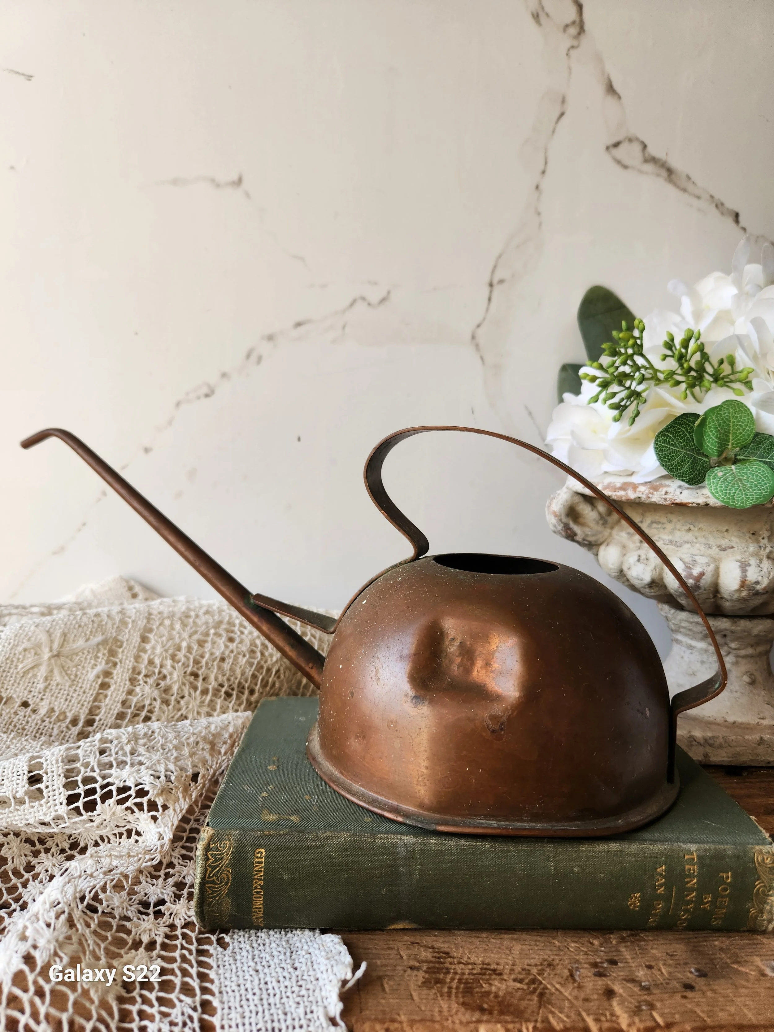 Shoppe › Solid Copper watering can Image 1 of 2 Image 2 of 2 Solid Copper watering can $38.00 Sold Out Antique solid copper watering can does have dent on one side holds water and fully functional 6x14 Sold Out Added! Antique solid copper watering can does have dent on one side holds water and fully functional 6x14