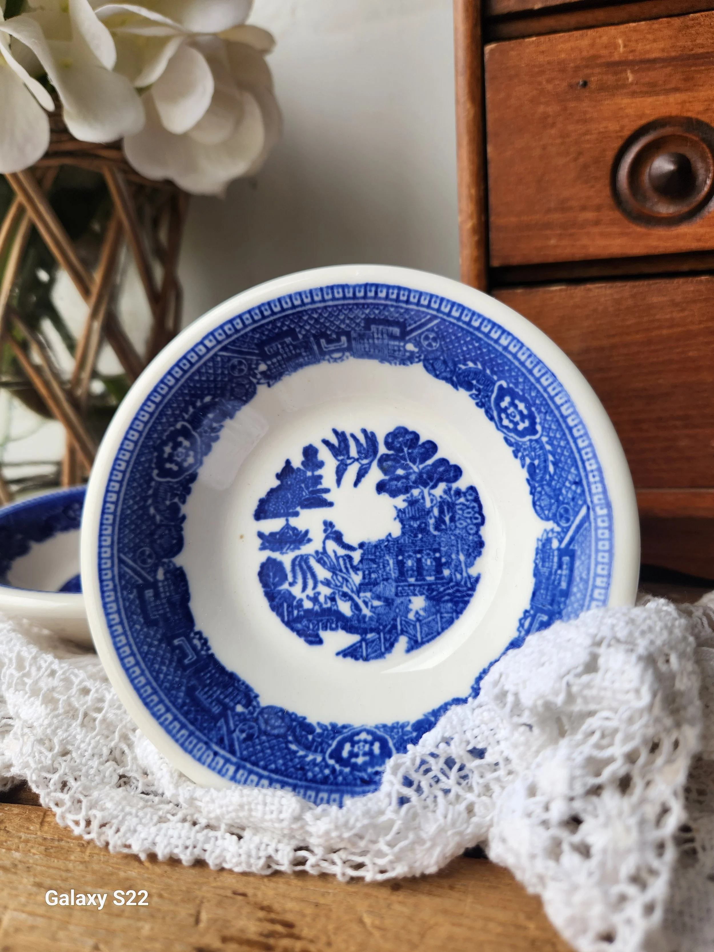 Shoppe › Pair Of Blue willow japan berry bowls Image 1 of 1 Pair Of Blue willow japan berry bowls $26.00 These are gorgeous! Antique and signed no chips or cracks 5” Add To Cart Added! These are gorgeous! Antique and signed no chips or cracks 5” Reviews Reviewer Name Review Date Star Rating Description Posted on Etsy Product Show More