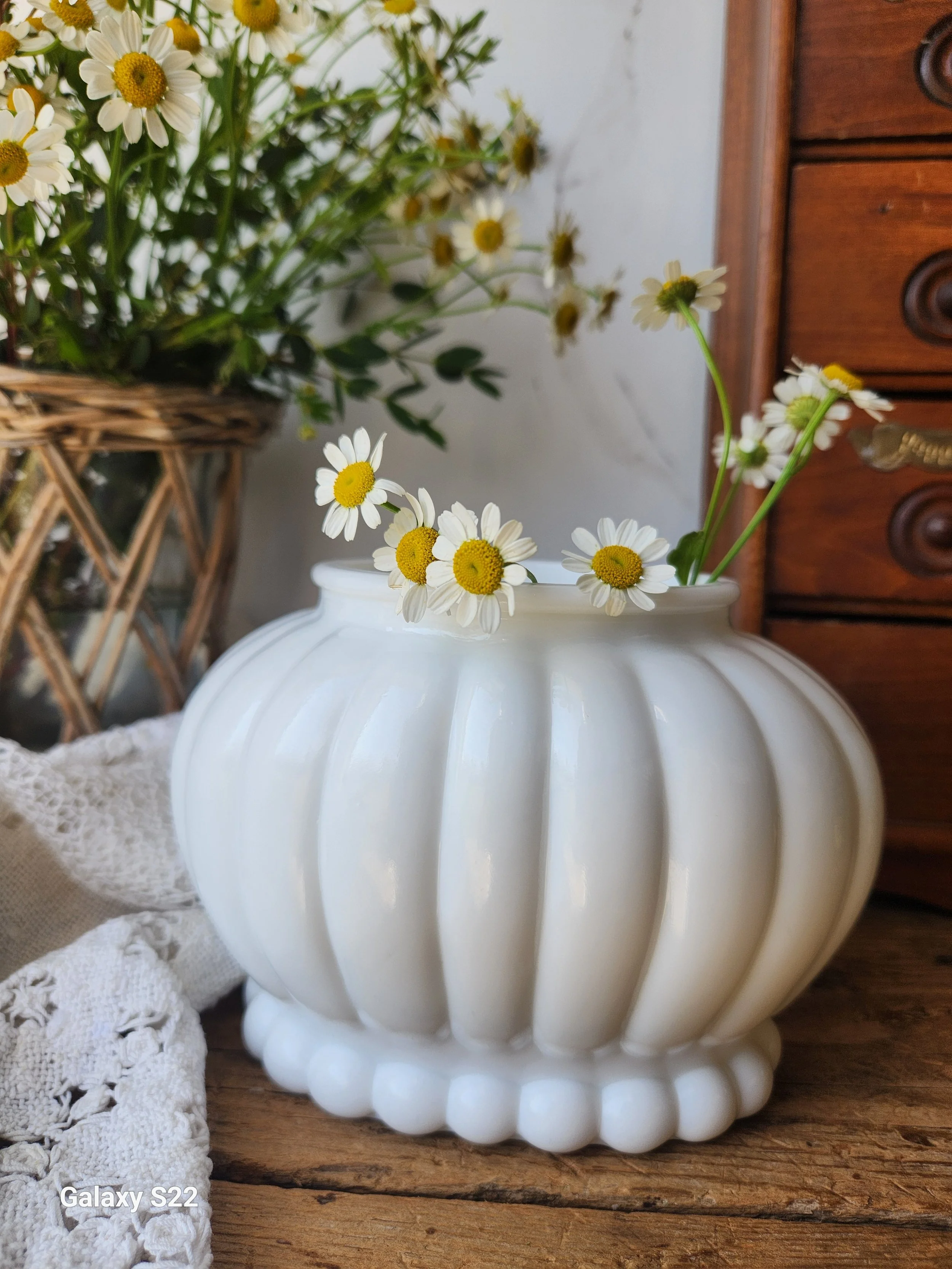 Shoppe › Rare Milkglass xl Jar Image 1 of 1 Rare Milkglass xl Jar $36.00 Sold Out Vintage lovely heavy duty and large milkglass vase 5x8 Sold Out Added! Vintage lovely heavy duty and large milkglass vase 5x8 Reviews Reviewer Name Review Date Star Rating Description Posted on Etsy Product Show More
