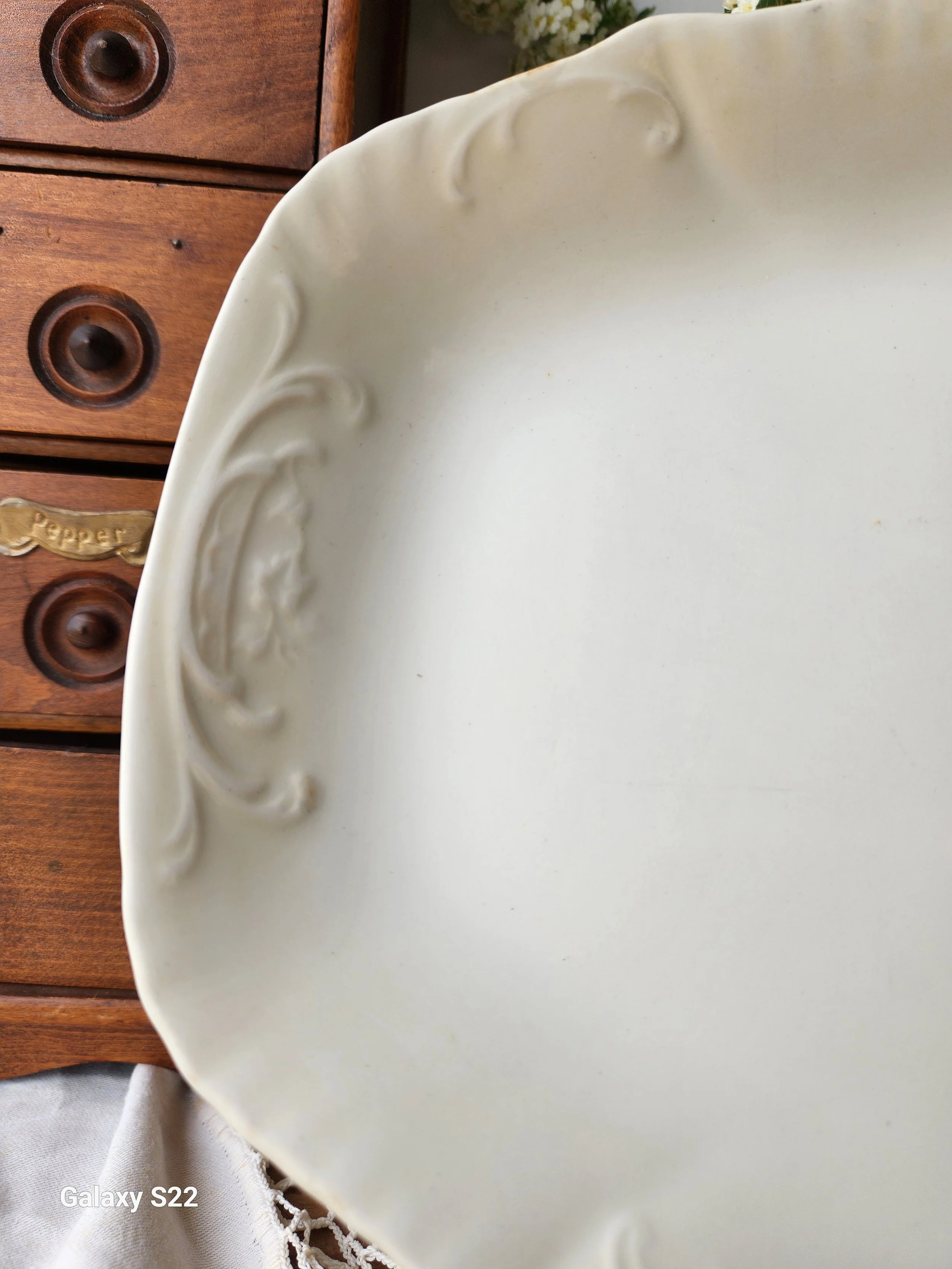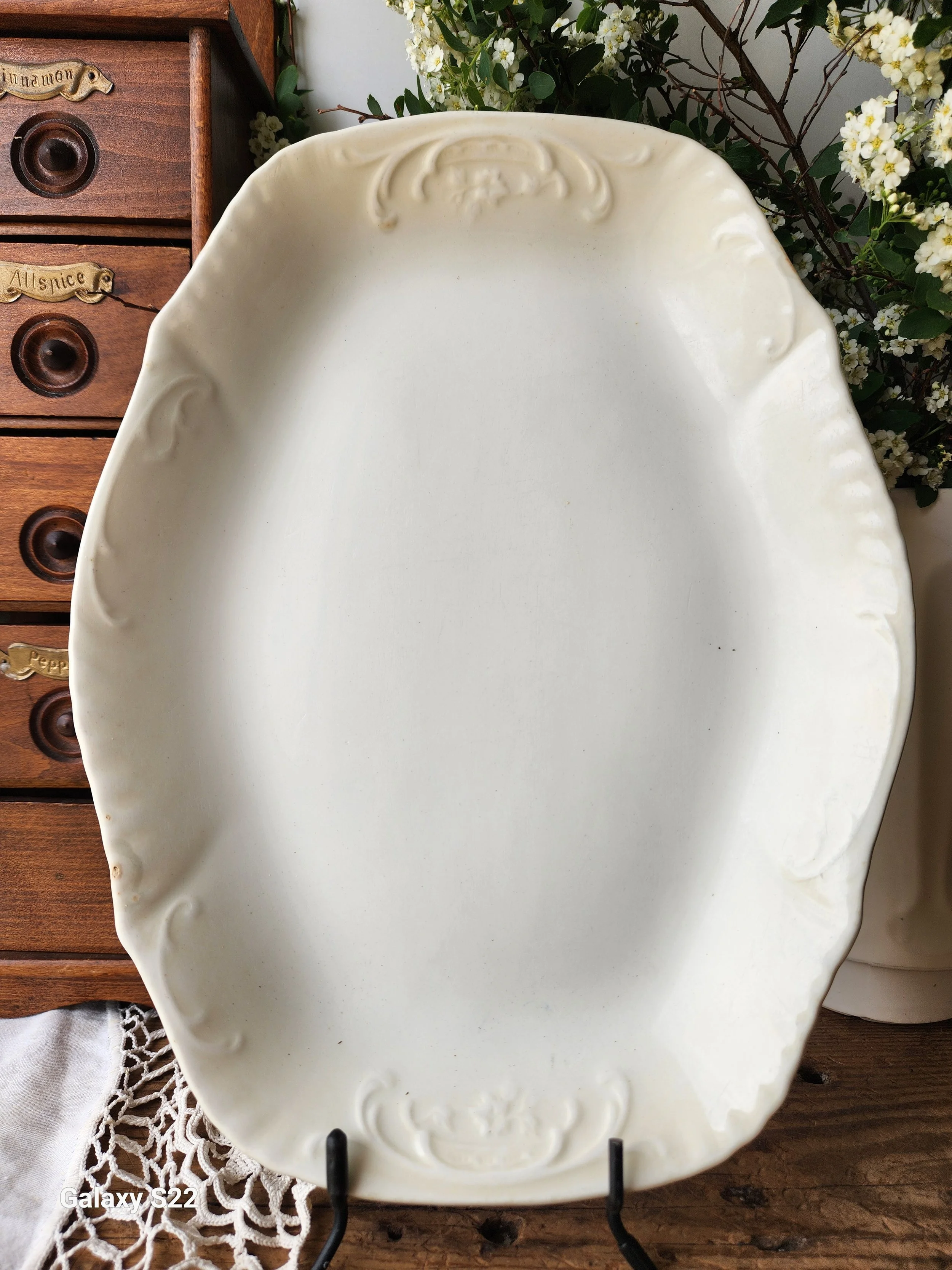 Shoppe › Rare Stamped Ironstone platter Image 1 of 5 Image 2 of 5 Image 3 of 5 Image 4 of 5 Image 5 of 5 Rare Stamped Ironstone platter $58.00 The shape and flowers of this platter are just my favorite! Add to a gallery wall for instant cottage charm 10x13 Add To Cart Added! The shape and flowers of this platter are just my favorite! Add to a gallery wall for instant cottage charm 10x13 Reviews Reviewer Name Review Date Star Rating Description Posted on Etsy Product Show More