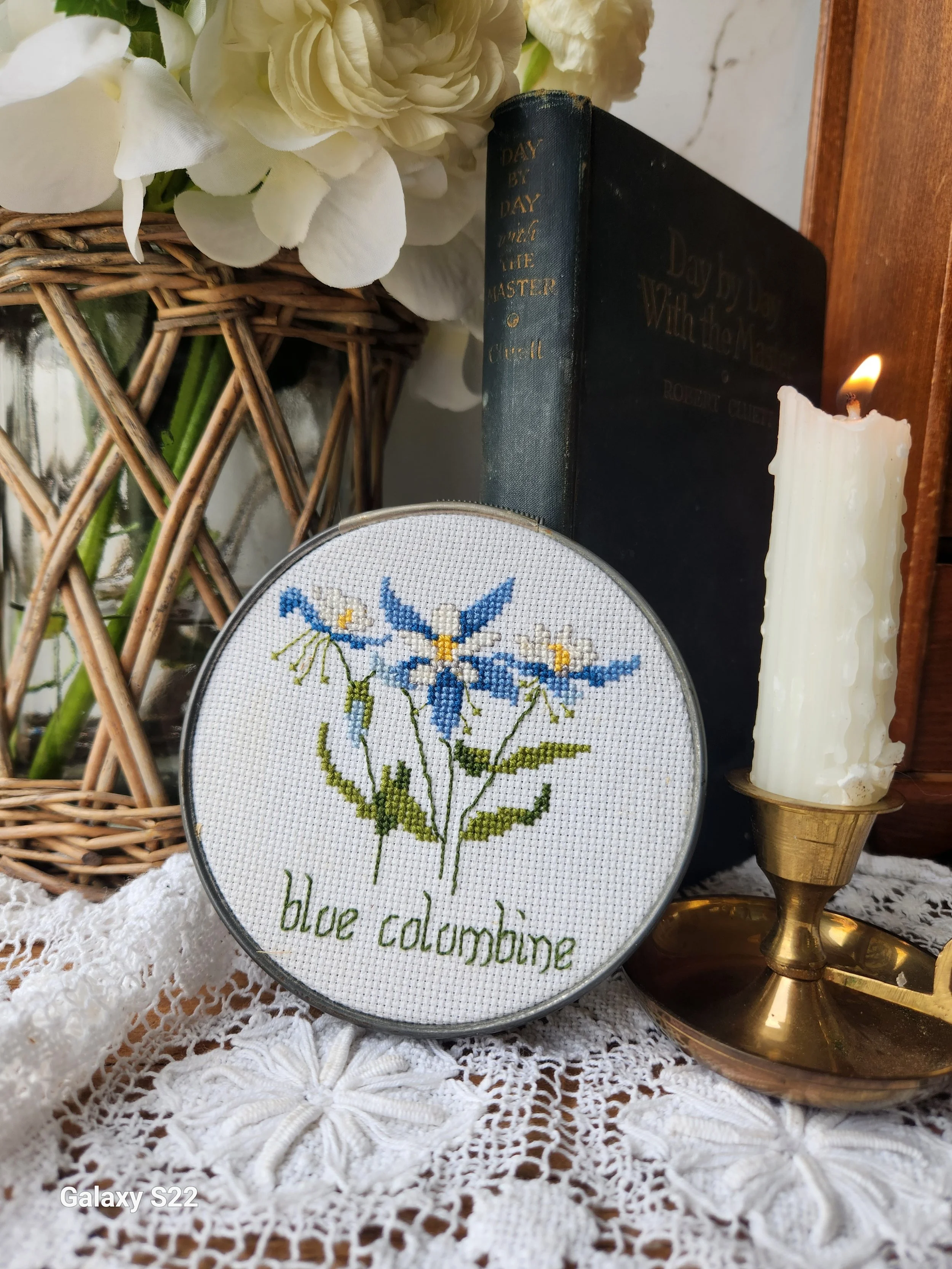 Shoppe › Darling Crosstitch sampler art Image 1 of 1 Darling Crosstitch sampler art $26.00 Hand crosstitched sweet Sampler in a vintage metal hoop frame 5” Add To Cart Added! Hand crosstitched sweet Sampler in a vintage metal hoop frame 5” Reviews Reviewer Name Review Date Star Rating Description Posted on Etsy Product Show More