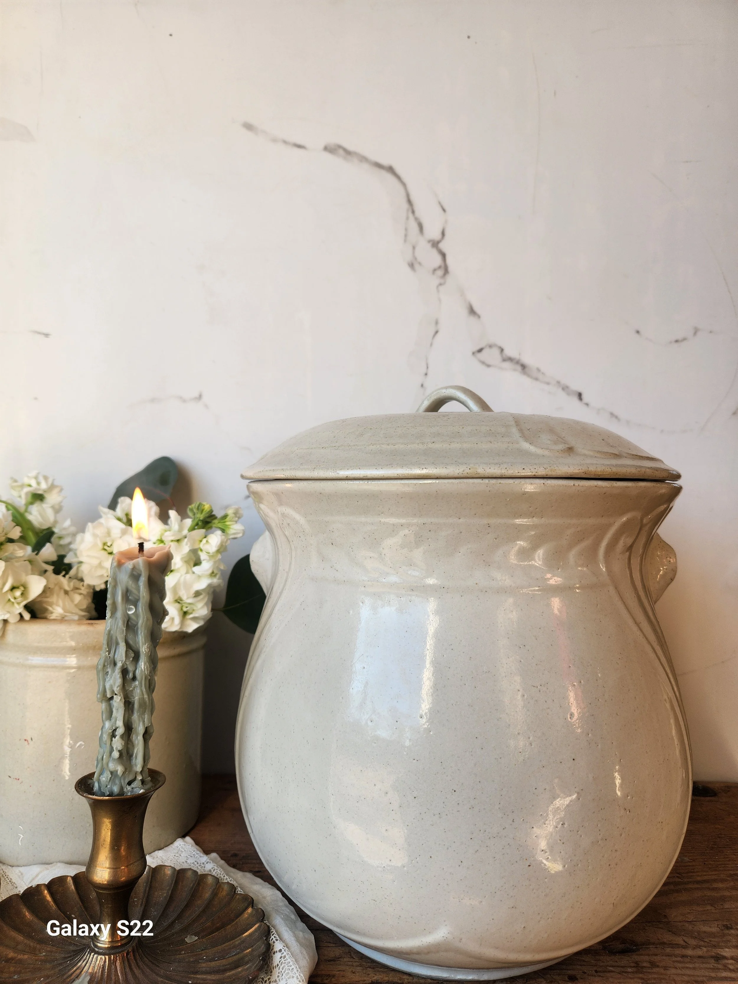 The most incredible pottery western Pottery stamped heavy Kitchen pail in incredible condition! Does not have handle but can easily add one