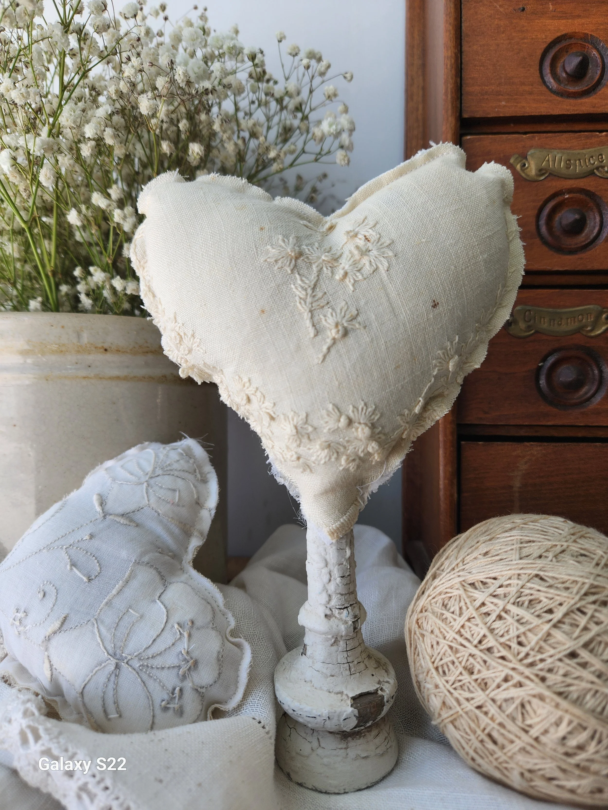Shoppe › Hand sewn by Me! Image 1 of 1 Hand sewn by Me! $28.00 Antique spindle cut and used as a stand for a Heart sewn from embroidered French linen 6x8 Add To Cart Added! Antique spindle cut and used as a stand for a Heart sewn from embroidered French linen 6x8 Reviews Reviewer Name Review Date Star Rating Description Posted on Etsy Product Show More