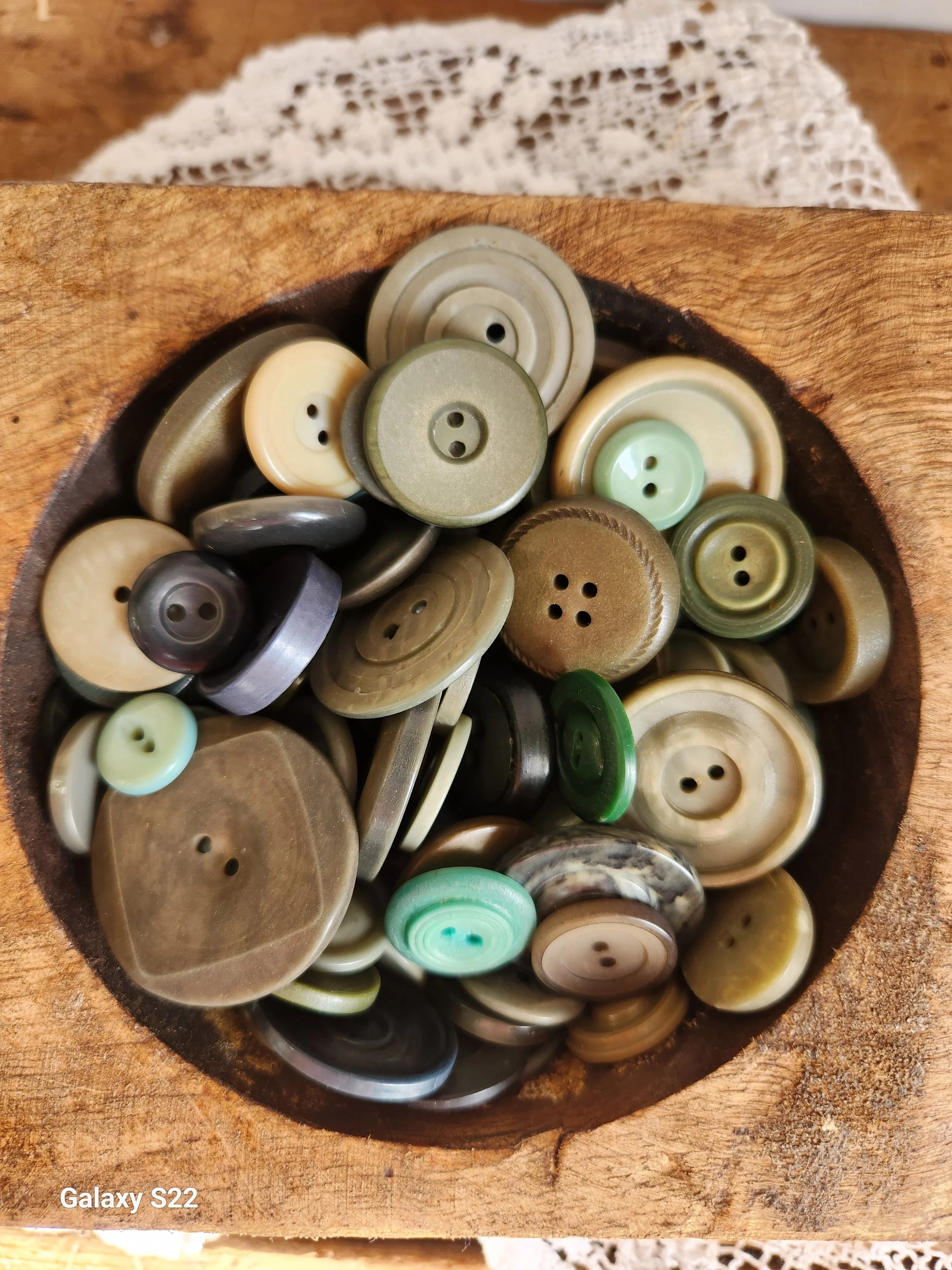 Shoppe › Green Vintage buttons Image 1 of 1 Green Vintage buttons $26.00 Sold Out Lovely 2 cups of green tones vintage buttons Sold Out Added! Lovely 2 cups of green tones vintage buttons