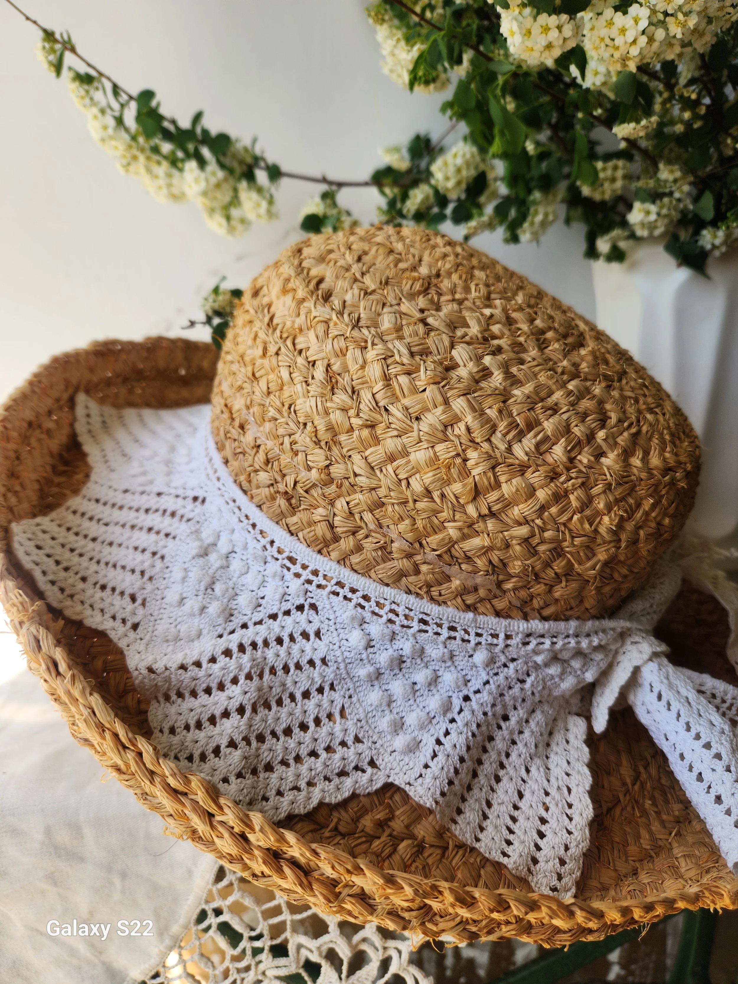 Shoppe › Vintage straw hat with handmade antique lace trim Image 1 of 3 Image 2 of 3 Image 3 of 3 Vintage straw hat with handmade antique lace trim $36.00 A classic lovely addition to a peg rail or collection! Ornate large handmade antique lace added! 16” Add To Cart Added! A classic lovely addition to a peg rail or collection! Ornate large handmade antique lace added! 16” Reviews Reviewer Name Review Date Star Rating Description Posted on Etsy Product Show More