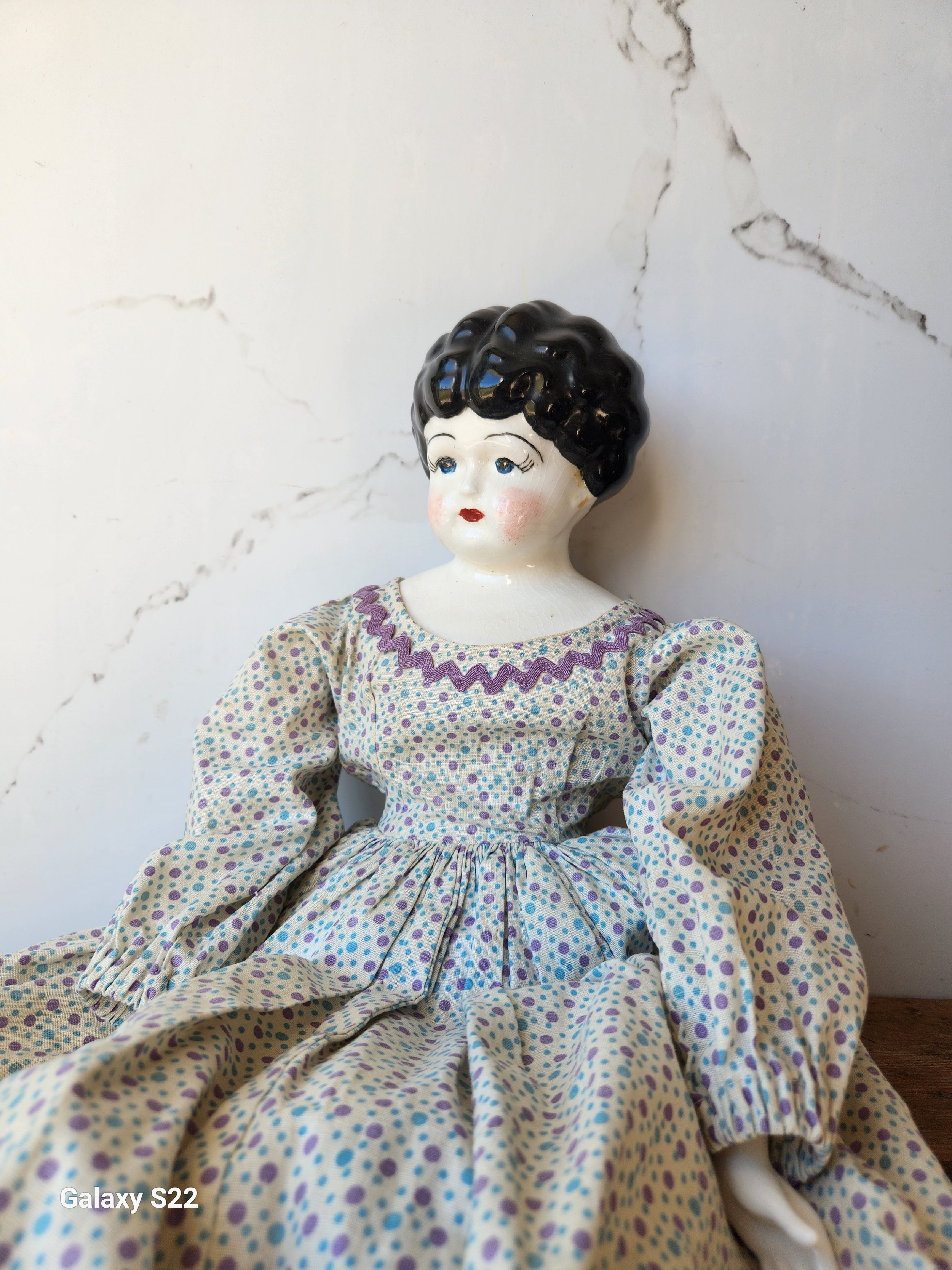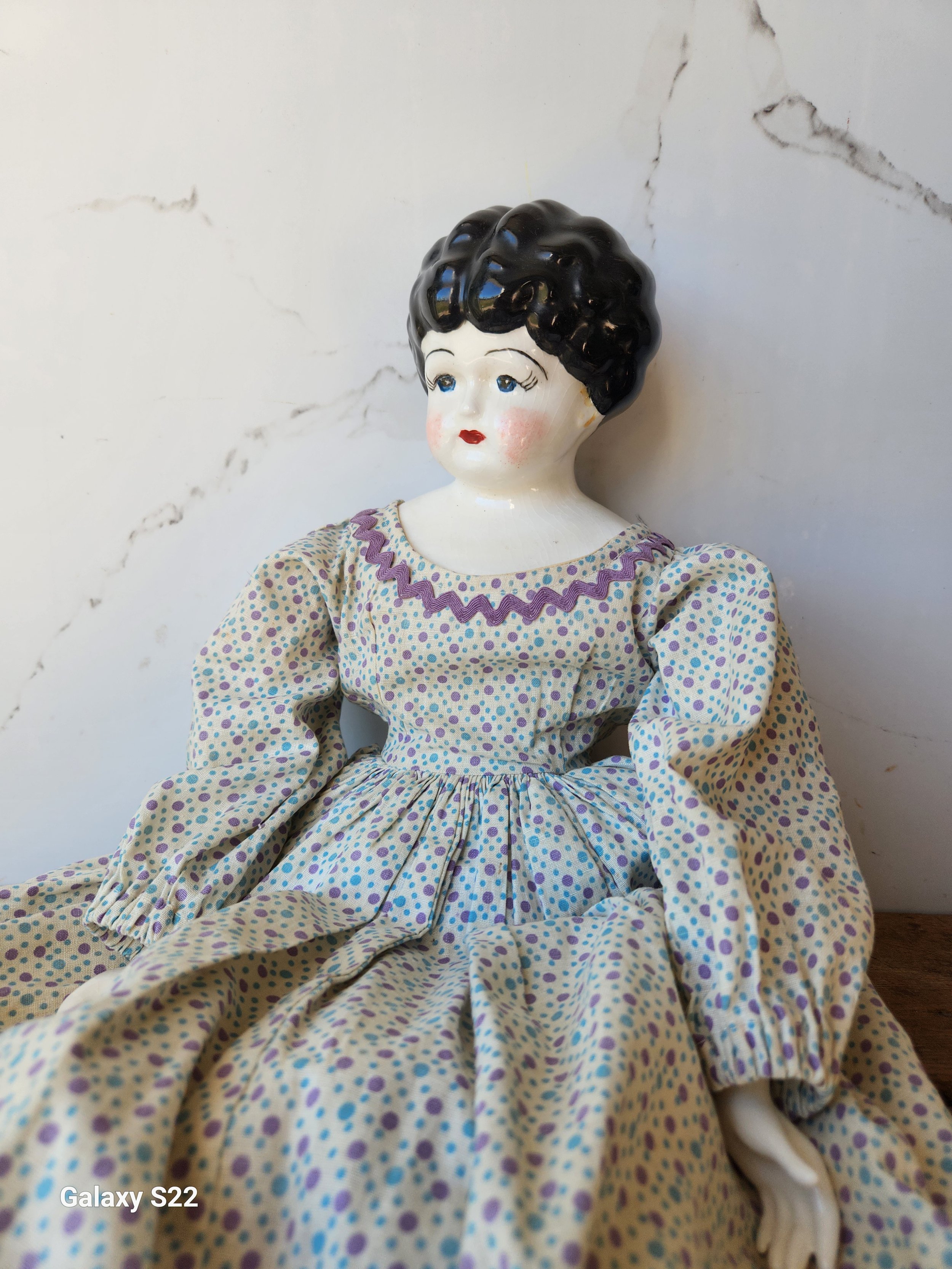 Shoppe › Antique China doll original Image 1 of 3 Image 2 of 3 Image 3 of 3 Antique China doll original $68.00 Lovely Antique china doll all original parts solid heavy body no chips or cracks 28” Add To Cart Added! Lovely Antique china doll all original parts solid heavy body no chips or cracks 28” Reviews Reviewer Name Review Date Star Rating Description Posted on Etsy Product Show More