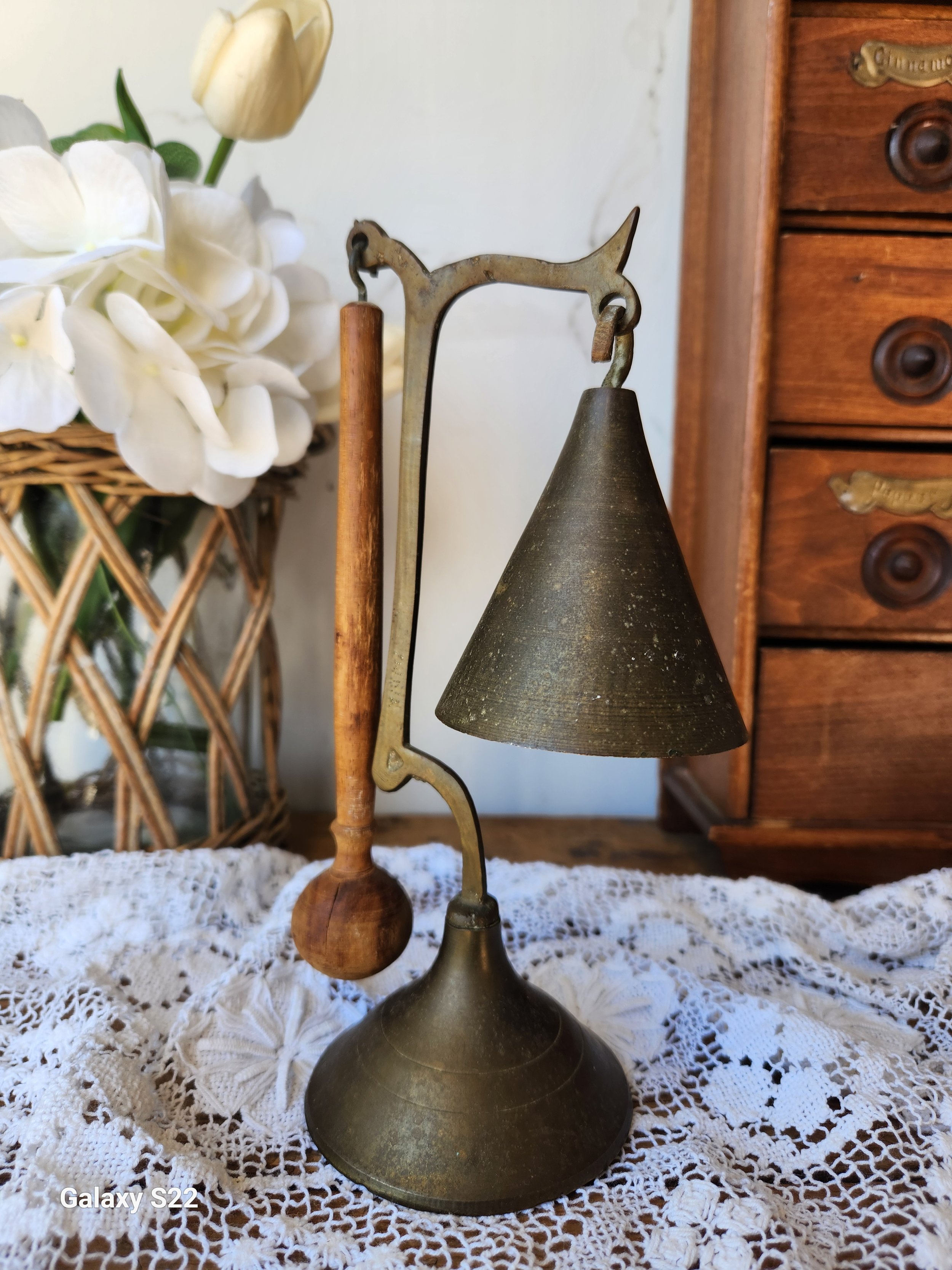 Shoppe › Rare Solid brass bell/chime Image 1 of 1 Rare Solid brass bell/chime $56.00 Sold Out With original wooden clapper! This set is perfect for a dinner bell or on a bedside table 6x8 Sold Out Added! With original wooden clapper! This set is perfect for a dinner bell or on a bedside table 6x8 Reviews Reviewer Name Review Date Star Rating Description Posted on Etsy Product Show More
