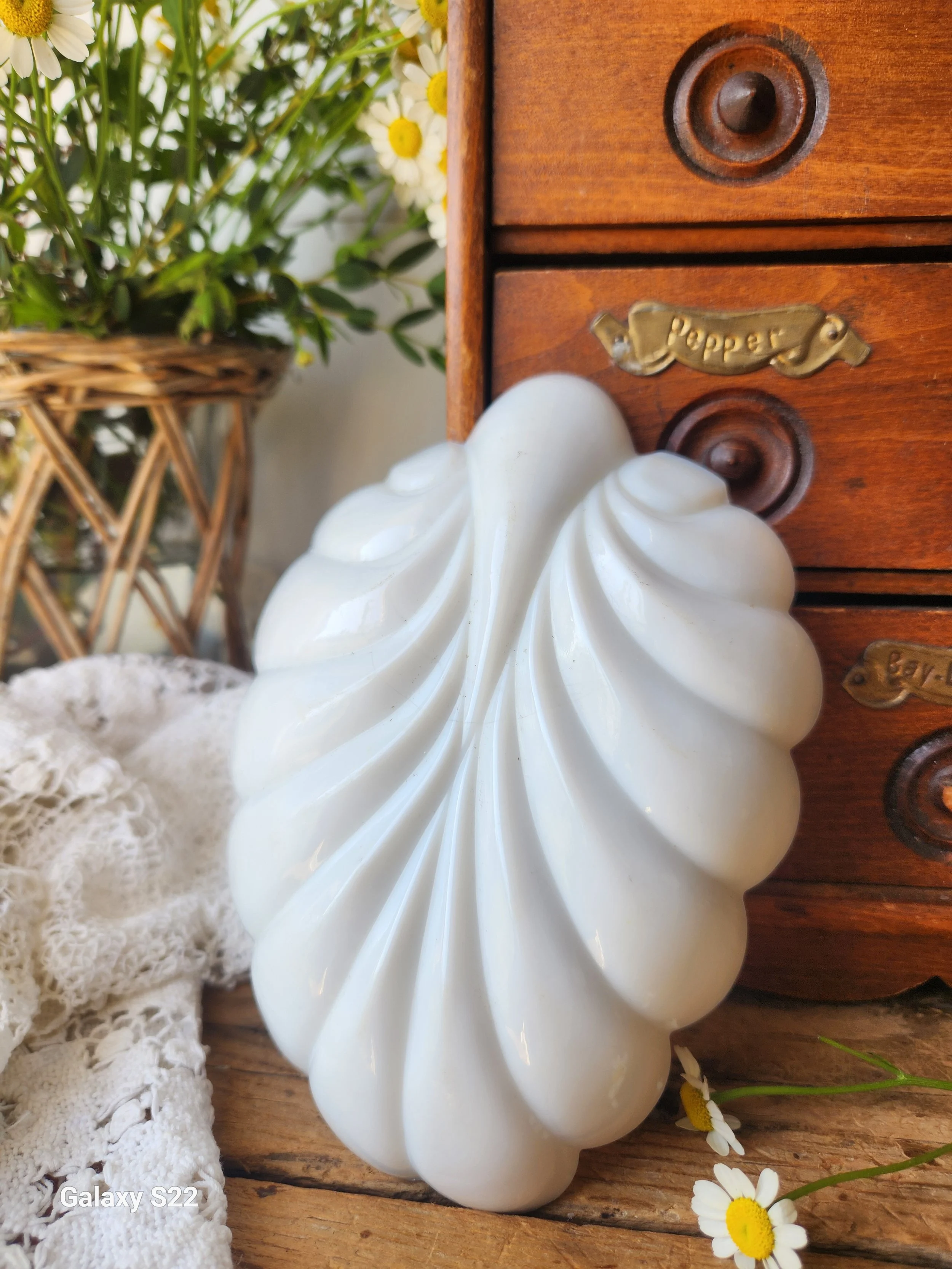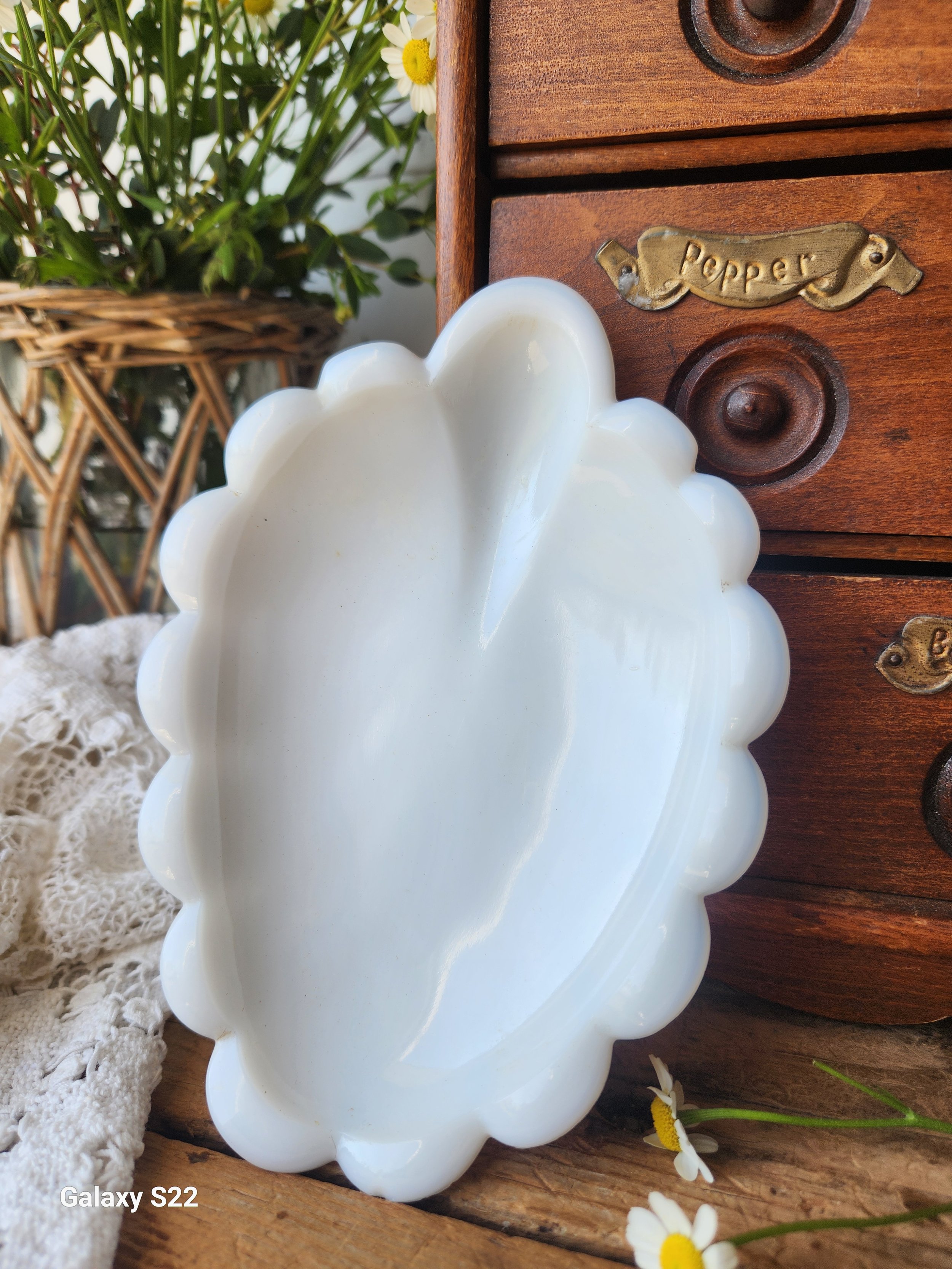 Shoppe › Vintage Milkglass shell dish Image 1 of 2 Image 2 of 2 Vintage Milkglass shell dish $26.00 It’s the scalloped edges for me! Heavy vintage milkglass the perfect dish for trinkets or treats! 5x7 Add To Cart Added! It’s the scalloped edges for me! Heavy vintage milkglass the perfect dish for trinkets or treats! 5x7 Reviews Reviewer Name Review Date Star Rating Description Posted on Etsy Product Show More