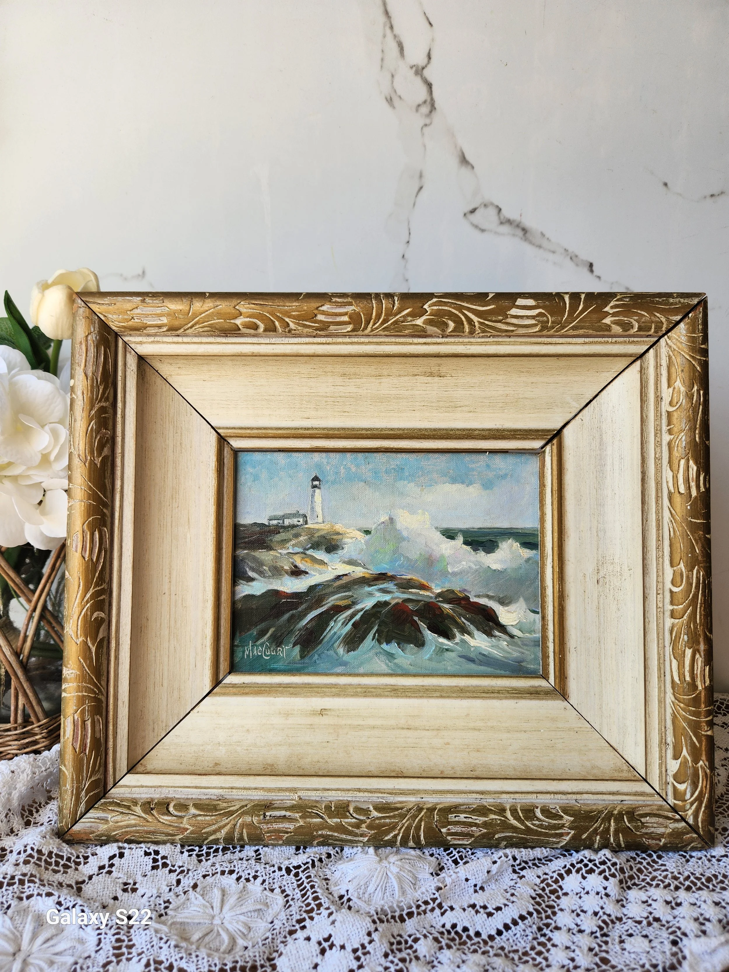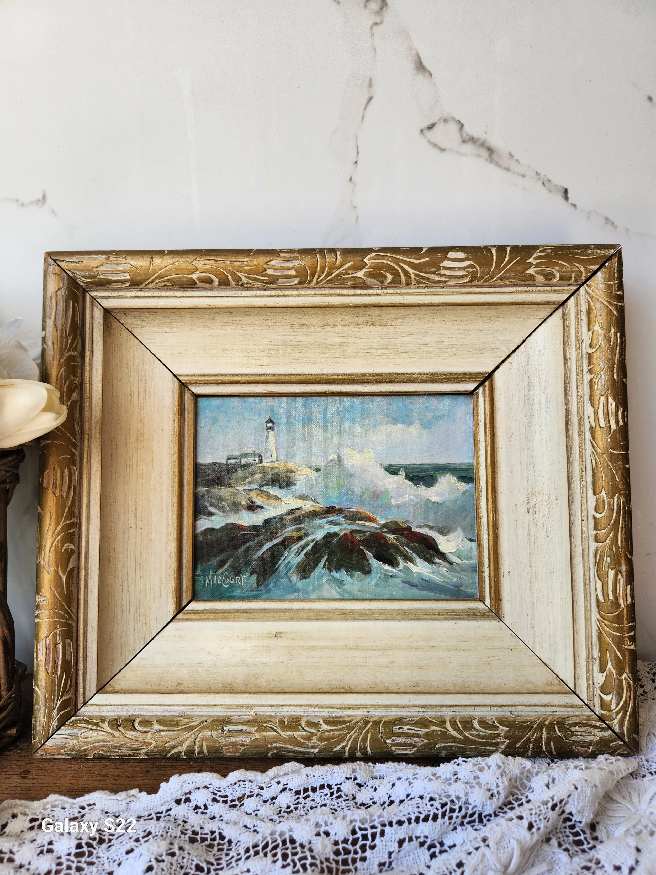 The colors and the view are just stunning! The light house features Portland head lighthouse in Cape Elizabeth Maine in a Vintage wood frame 11x13