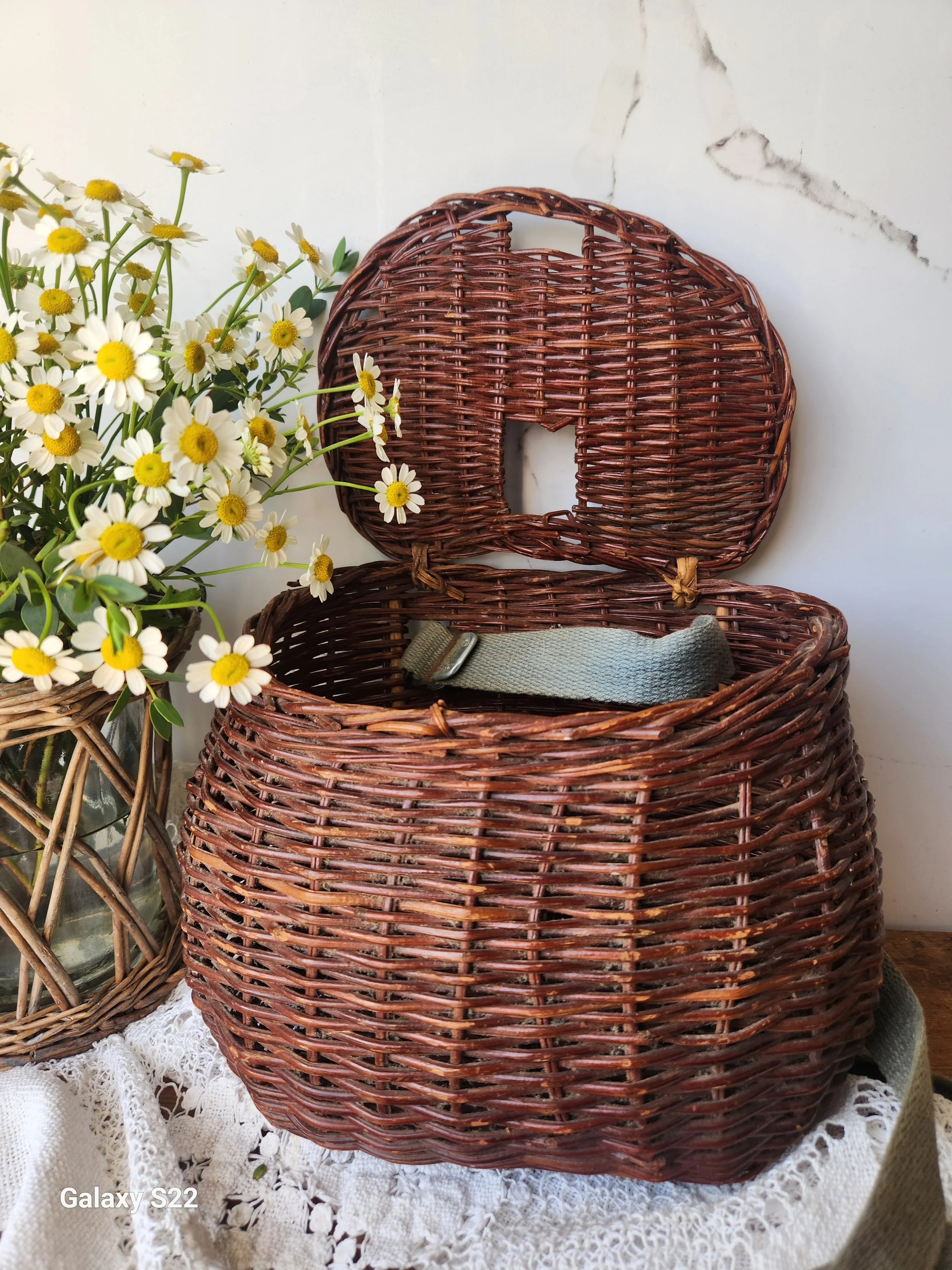 Shoppe › Vintage Fishing creel basket Image 1 of 2 Image 2 of 2 Vintage Fishing creel basket $56.00 Charming hung on a door with florals! Or use in a vignette! 9x10 Add To Cart Added! Charming hung on a door with florals! Or use in a vignette! 9x10 Reviews Reviewer Name Review Date Star Rating Description Posted on Etsy Product Show More