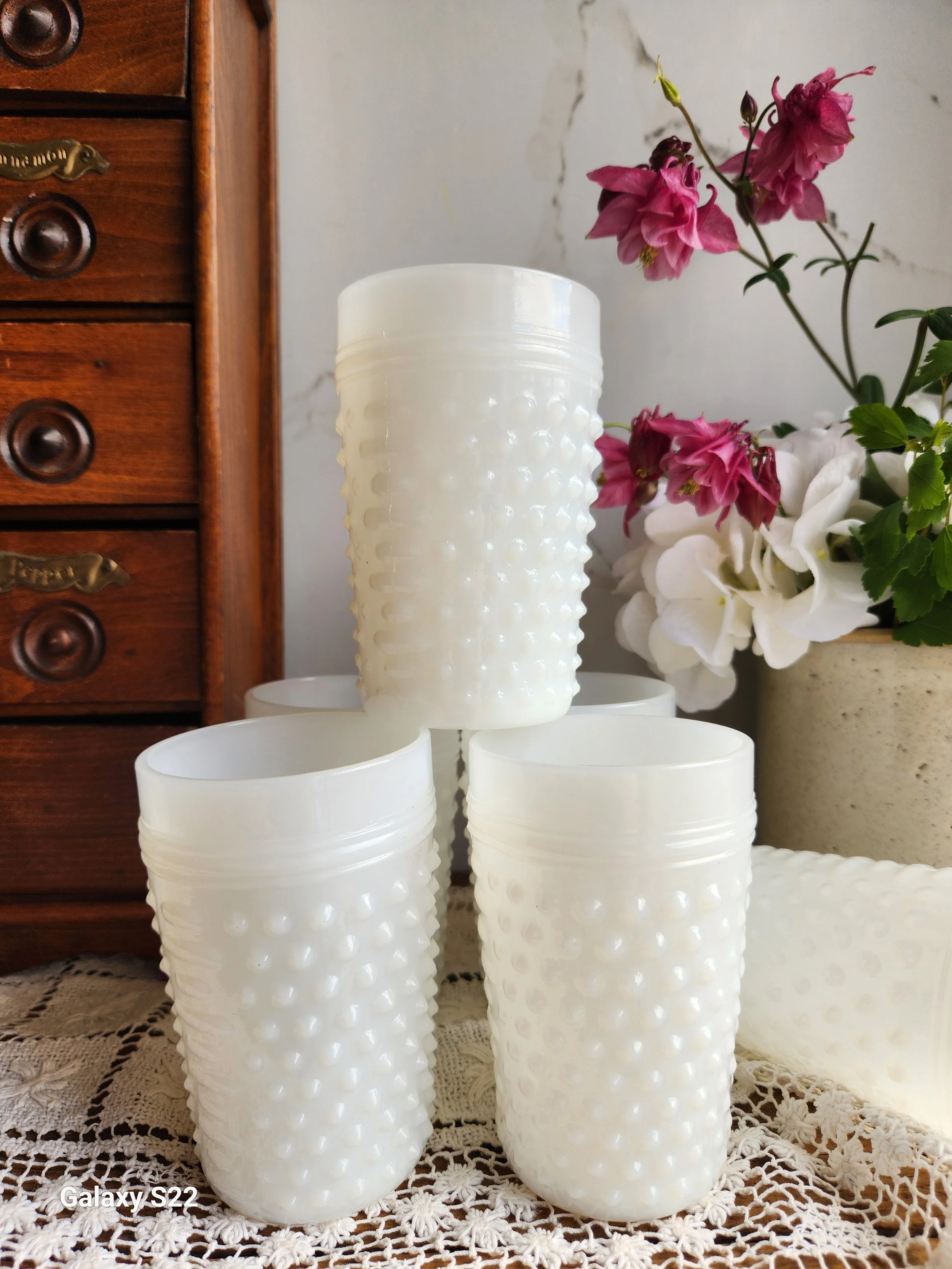 Shoppe › Vintage Fenton Milkglass hobnail cups Image 1 of 2 Image 2 of 2 Vintage Fenton Milkglass hobnail cups $56.00 These are the best size and there are 12 available! Sold in sets of four 3x5 Add To Cart Added! These are the best size and there are 12 available! Sold in sets of four 3x5 Reviews Reviewer Name Review Date Star Rating Description Posted on Etsy Product Show More