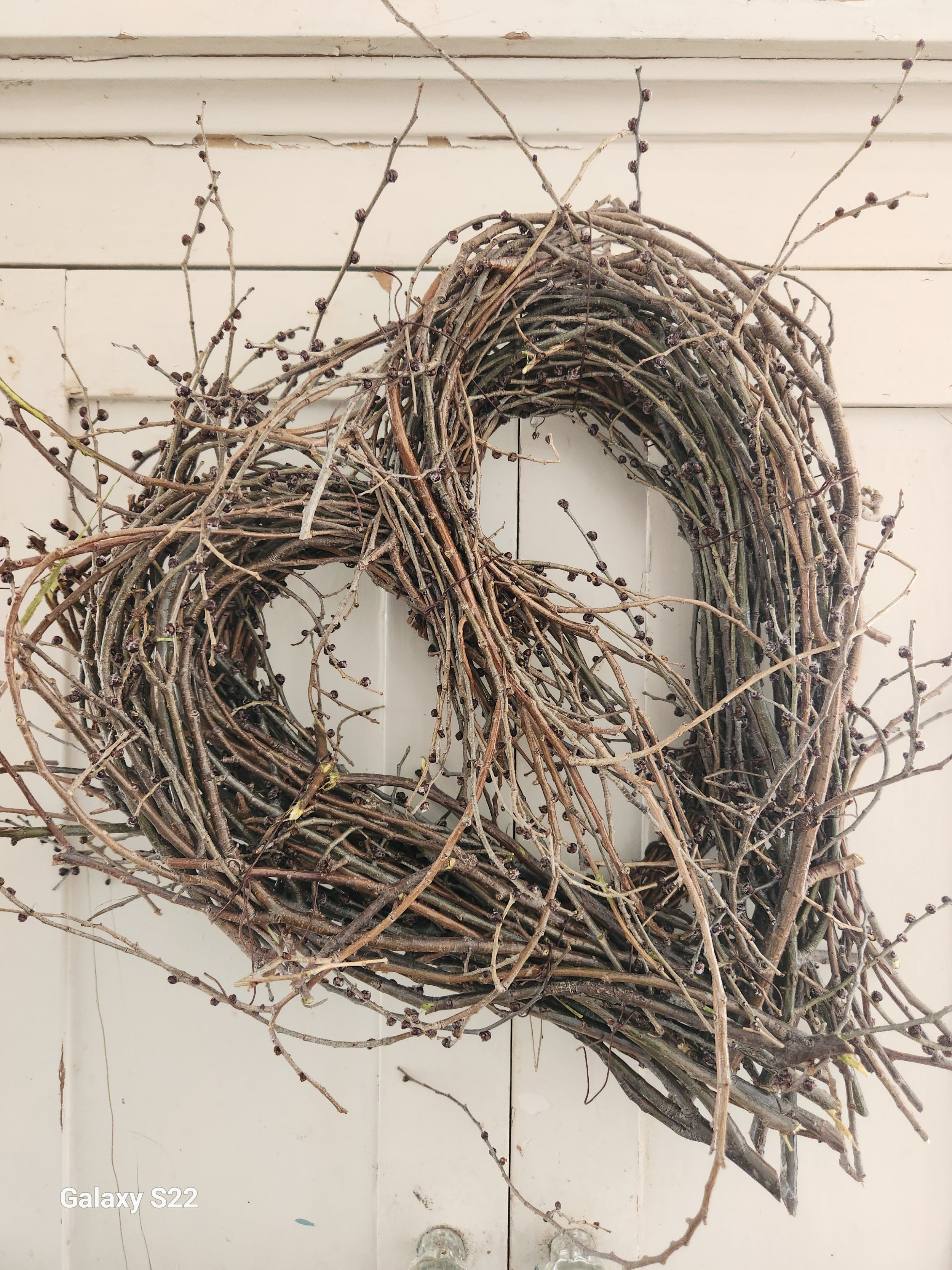 This is a original creation of mine! Hand gathered elm braches in bud, from our farm. Woven together and wired, yet adjustable hook for hanging on the back and sprayed with a protectant, so you can use for many years to come! This one is very large 13x15